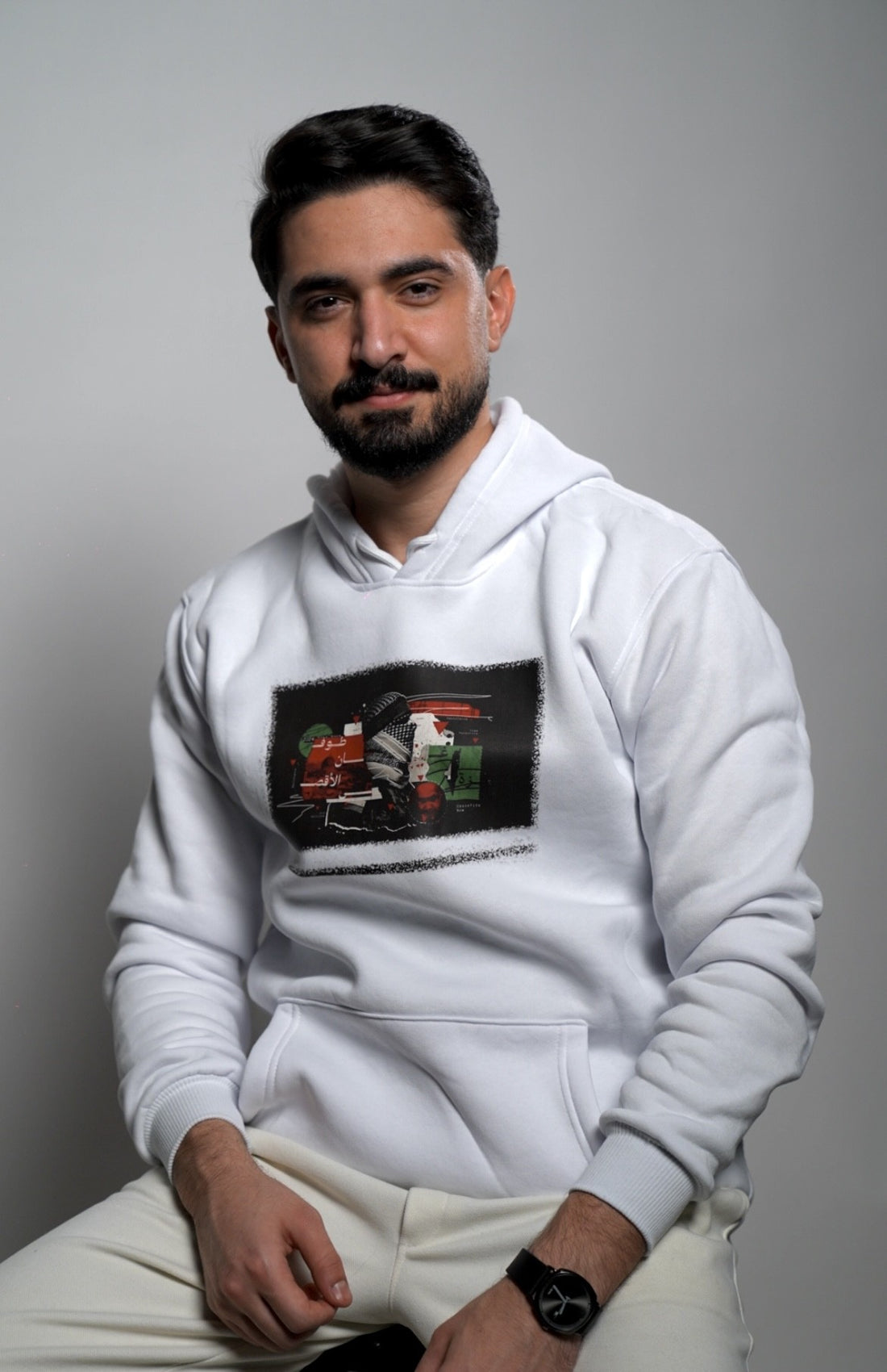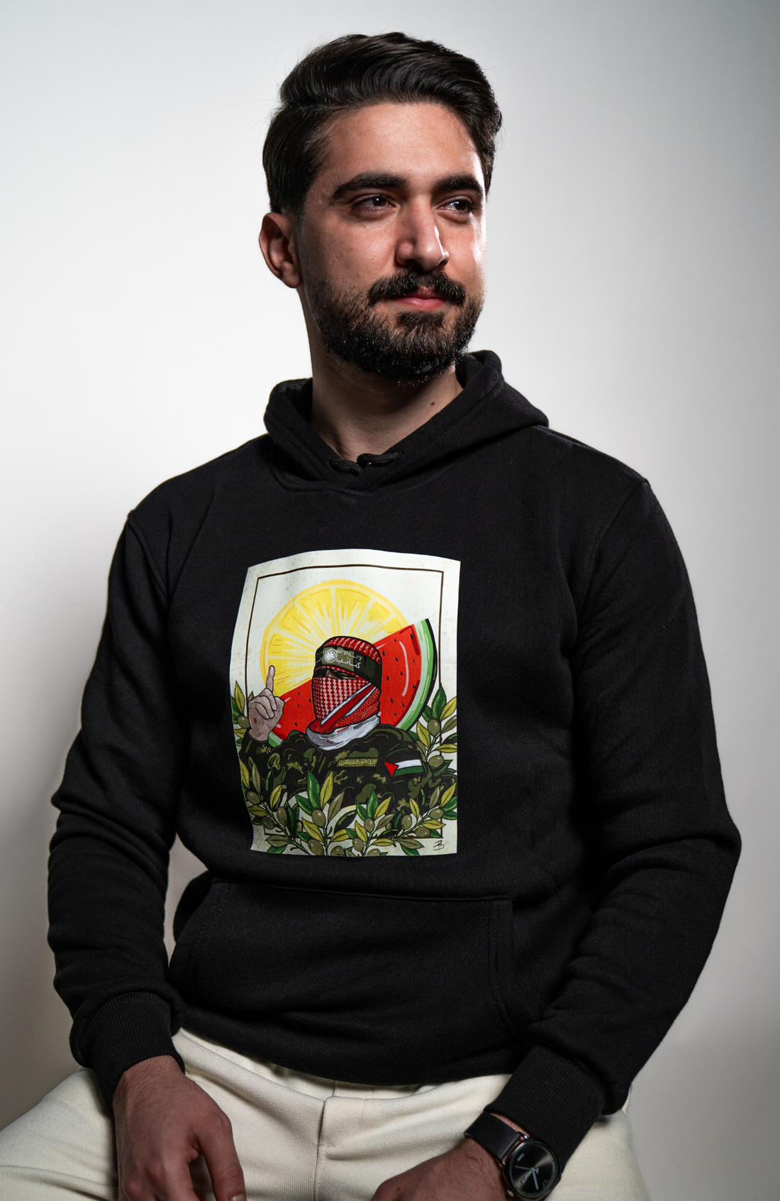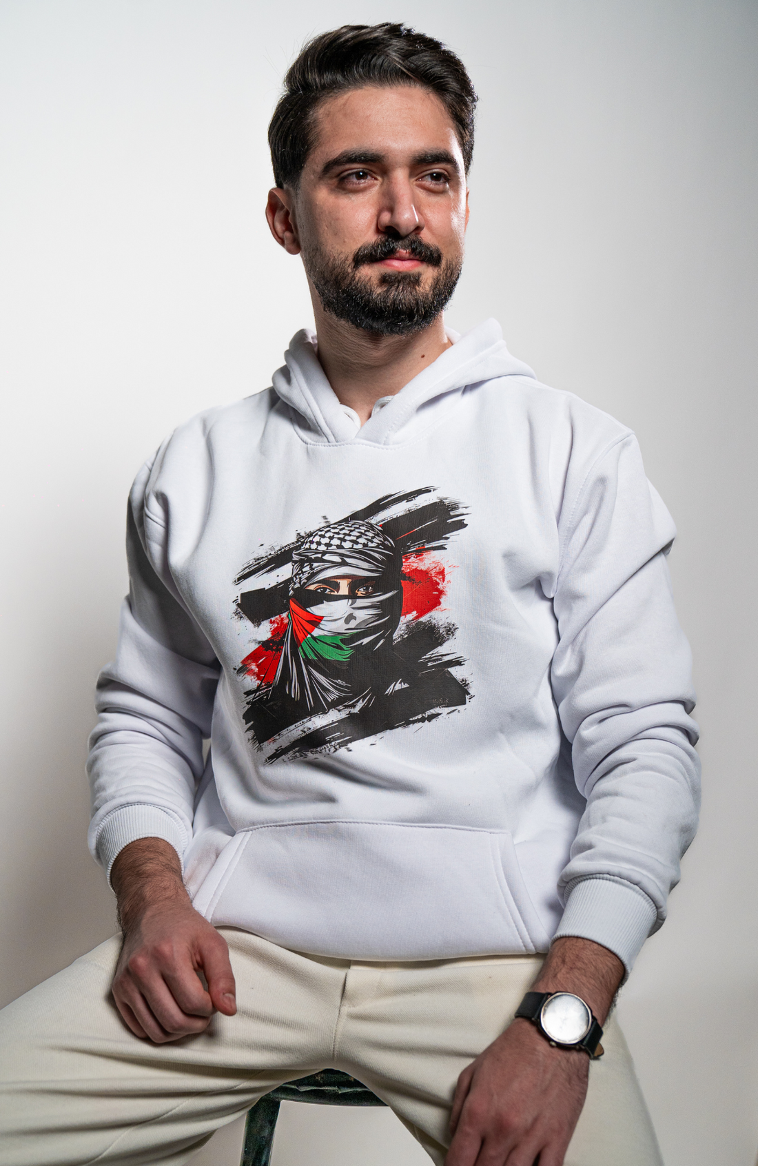 الميزة الوصف الخامة هودي مصنوع من قطن بنسبة 100%. التصميم تظهر صورة القائد العربي الفلسطيني...