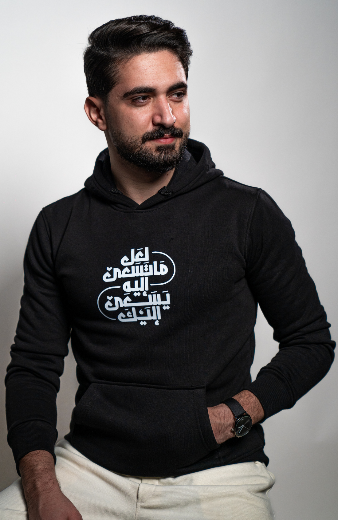 الميزة الوصف الخامة هودي مصنوع من قطن بنسبة 100%. التصميم اقتباس عربي تحفيزي يقول: "لعل...