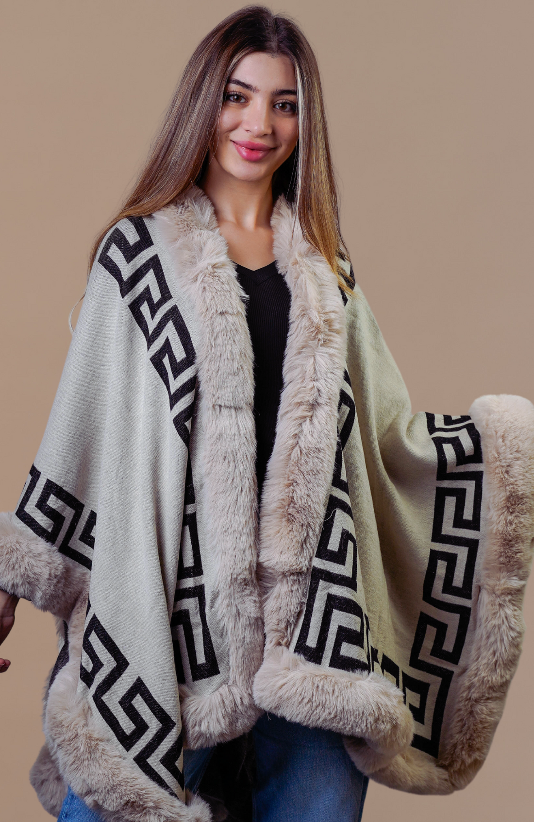الخامة: صوف عالي الجودة مطرز حواف من الفرو. إضافات : مزود بـ شنقل في منطقة...