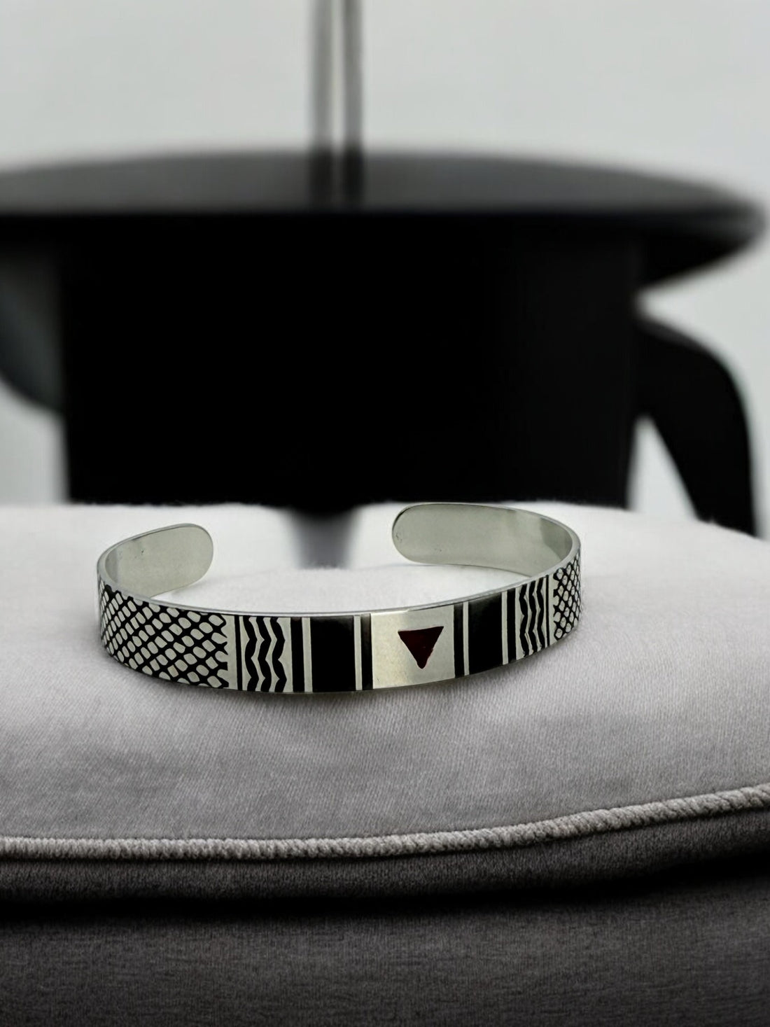 خاصية الوصف النوع سوار مفتوح المعدن ستانلس ستيل نوع الزخرفة زخارف فلسطينية هندسية الألوان فضي...