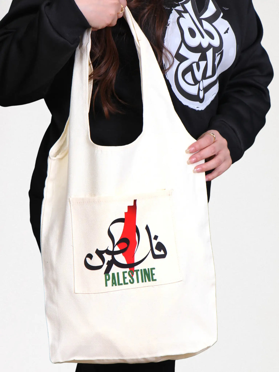 حقيبة يد قماش متوسطة الحجم مع جيب