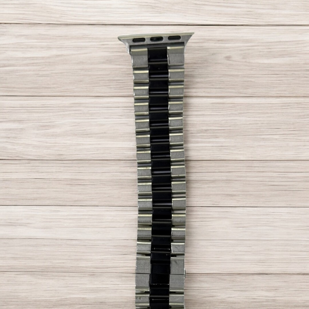 حزام ساعة ستانلس ستيل فضي مع تفاصيل سوداء - أبل