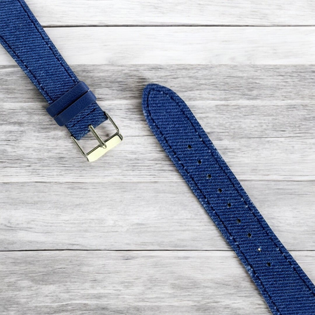 حزام ساعة جلد أسود مع قماش بيج مزخرف - أبل